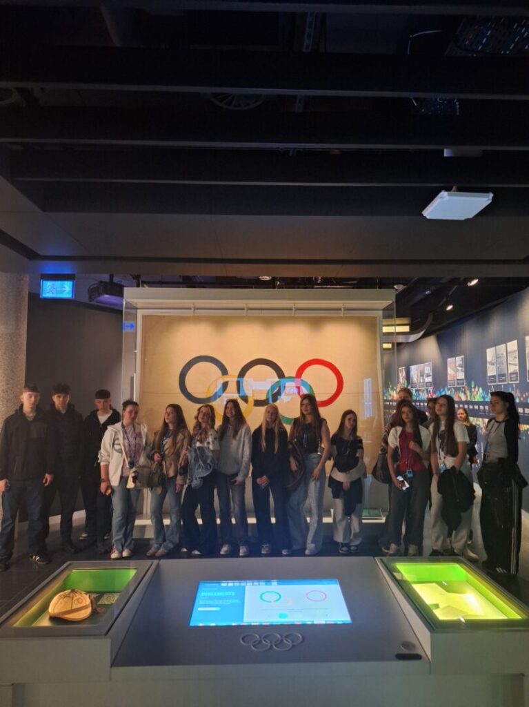 U vođenom obilasku modernog Olimpijskog muzeja na francuskom jeziku, upoznali smo povijest i značaj olimpijskog pokreta, povijest olimpijskih igara i brojne zanimljivosti vezane za sport i njegovu važnost na osobnoj, nacionalnoj i svjetskoj razini. Osobito atraktivni našim učenicima bili su dijelovi muzeja gdje se prikazuju isječci s otvaranja olimpijskih igara, kao i dio s predmetima koje su velikani sporta poklonili Muzeju. Među izloženim predmetima nalaze se i skije Janice Kostelić, hrvatske olimpijke koja je osvojila čak šest olimpijskih medalja, od čega četiri zlatne. Tako je postala prva skijašica alpskih disciplina koja je osvojila šest olimpijskih medalja. U muzeju smo vidjeli i originalne olimpijske baklje (od prvih modernih olimpijskih igara sve do danas), među kojima i onu kojom je naša klizačica Sanda Dubravčić zapalila olimpijski plamen na Zimskim olimpijskim igrama u Sarajevu 1984. godine.