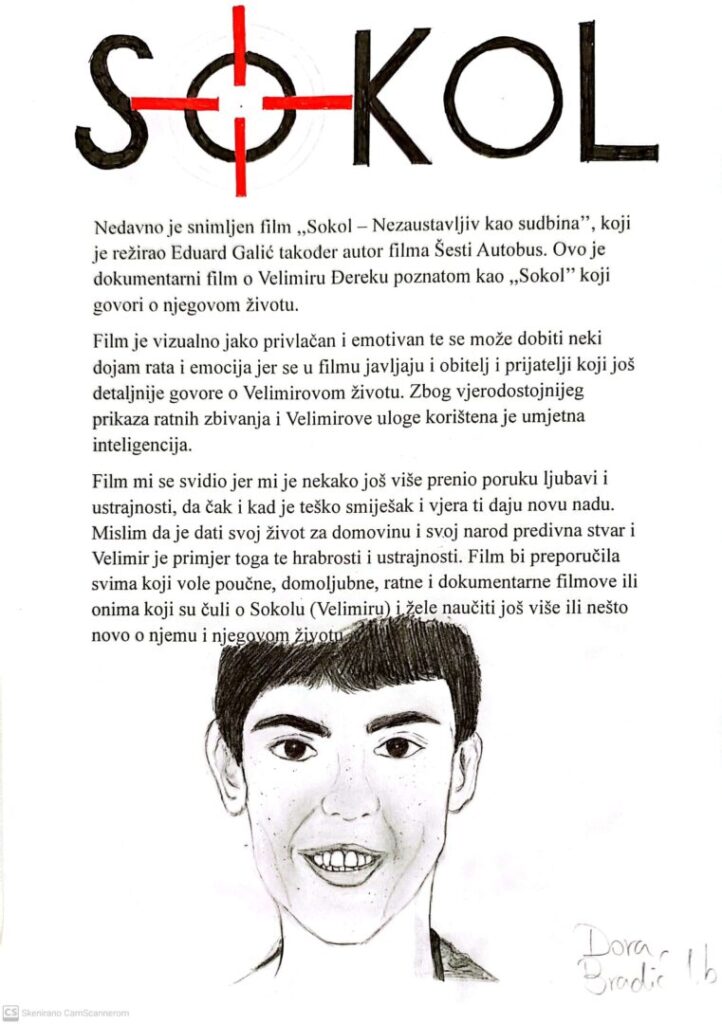 26. studenog 2025., u pratnji profesorica Mirele Balešić Jović i Lidije Dumančić, prisustvovali smo projekciji filma „Sokol“, snažne priče o Domovinskom ratu i dobrovoljcu Velimiru Ðereku. Film prikazuje koliko su hrabrost, ljubav prema domovini i žrtva pojedinca snažni kada se brani ono najvažnije – sloboda i dostojanstvo čovjeka. Njegova priča nas je podsjetila da iza svake povijesne lekcije stoje stvarni ljudi, njihove obitelji i životi koji su zauvijek promijenjeni.