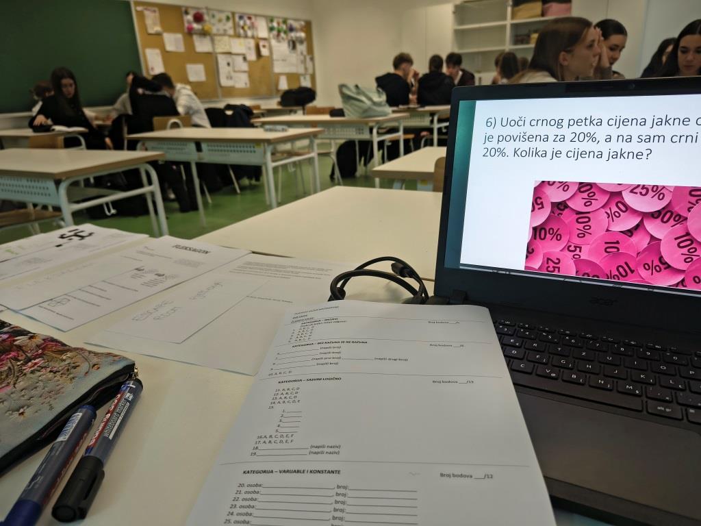4.12. obilježili smo večer matematike skupom interaktivnih i kreativnih radionica. Cilj je bio približiti učenicima i svima zainteresiranima zabavnu stranu matematike. Popularna aktivnost bila je escape room, a panoe smo ukrasili matematičkim pahuljicama. Učenici su u grupama rješavali mozgalice, dok su neki sudjelovali u pub kvizu gdje je najbolja ekipa odnijela slatku nagradu.