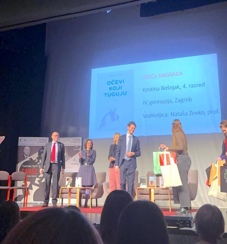 U sklopu projekta Čitanje u fokusu predstavljen je i projekt Rođeni za čitanje: 15 po 15: cijela Hrvatska čita djeci! u kojem s velikim oduševljenjem sudjelujemo. Tom prilikom prikazan je i kratki film u kojem Kristina Bošnjak govori o samom sudjelovanju. Zahvaljujem i ravnateljici Sonji Kamčev Bačani, prof. koja nas je došla podržati! Zahvaljujem svima koji su nas bodrili i koji su bili velika podrška iz pozadine! I za kraj, hvala g. Srđanu Grbiću, na svakom mail-podsjetniku!