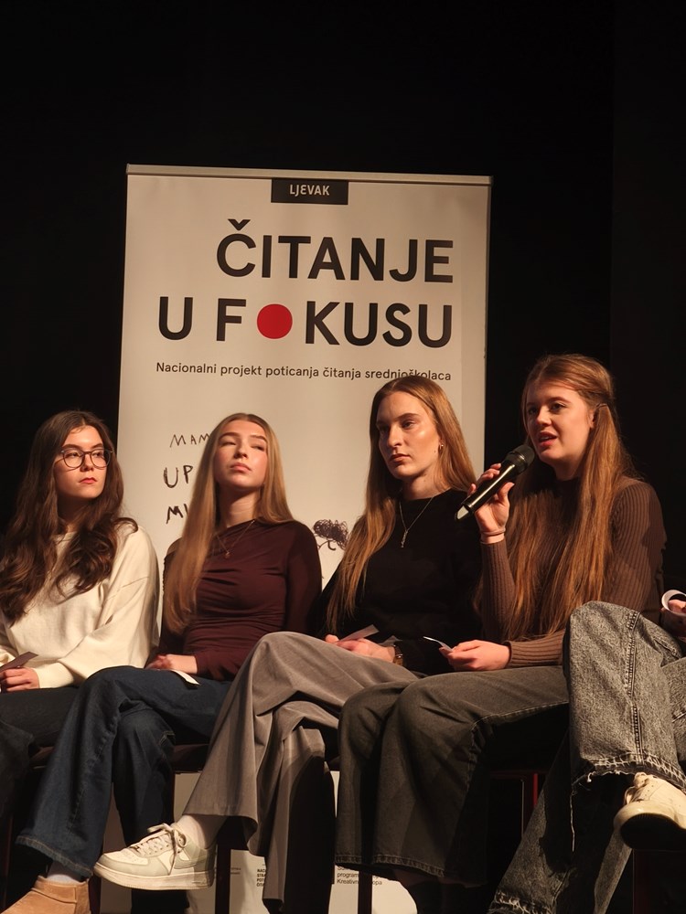 U uvodnom dijelu predstavnici čitateljskih skupina i mentori davali su izjave o samome projektu, naša predstavnica bila je Anamarija Đurin, a nakon toga slijedio je prigodni program u kojem nam se obratila ministrica Nina Obuljen Koržinek poticajnim riječima koje ćemo pamtiti i koje će nas motivirati u našem daljnjem razvoju, potom je slijedio razgovor s predstavnicima čitateljskih skupina. Naša predstavnica bila je Kristina Bošnjak.