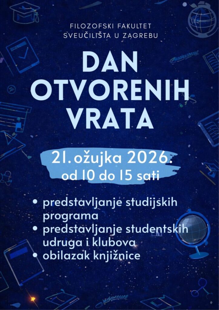 Tog dana moći ćete se upoznati sa svim studijskim programima koji se mogu studirati na Fakultetu, saznati sve o mogućnostima kombiniranja različitih studija, a istovremeno i o postupku prijave i upisa te o dinamičnom studentskom životu na Filozofskom. Nastavnici i studenti svakog studija odgovarat će na sva pitanja od 10 do 15 sati, a predviđeno je i pojedinačno predstavljanje svakog studijskog programa u trajanju od 15 minuta. Najveća fakultetska knjižnica u Hrvatskoj također će biti otvorena za sve zainteresirane buduće studente Filozofskog fakulteta.