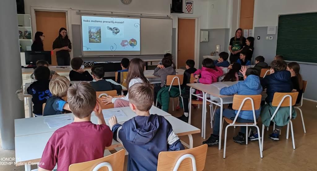 20. ožujka 2026. povodom Tjedna mozga u Hrvatskoj obilježili smo u našoj Četvrtoj Dan mozga. Zamislili smo ga kao Mali sajam znanosti na kojem su se naši učenici pokazali i dokazali kao pravi znanstvenici, animatori i predavači jer su svoje znanje podijelili ostalim učenicima naše Škole, ali i gostujućim učenicima iz OŠ Kajzerica te djeci predškolskih odgojnih skupina DV Trnsko. Naši bivši učenici uključili su se u projekt te proveli radionice i održali predavanja našim sadašnjim učenicima. Veliko hvala našim učenicama Evi Kolbas i Hani Štimac što su se uključile i odazvale našem pozivu, pridonijele svojim idejama, bile nositeljice aktivnosti te su na taj način sudjelovale u samoj realizaciji projekta.