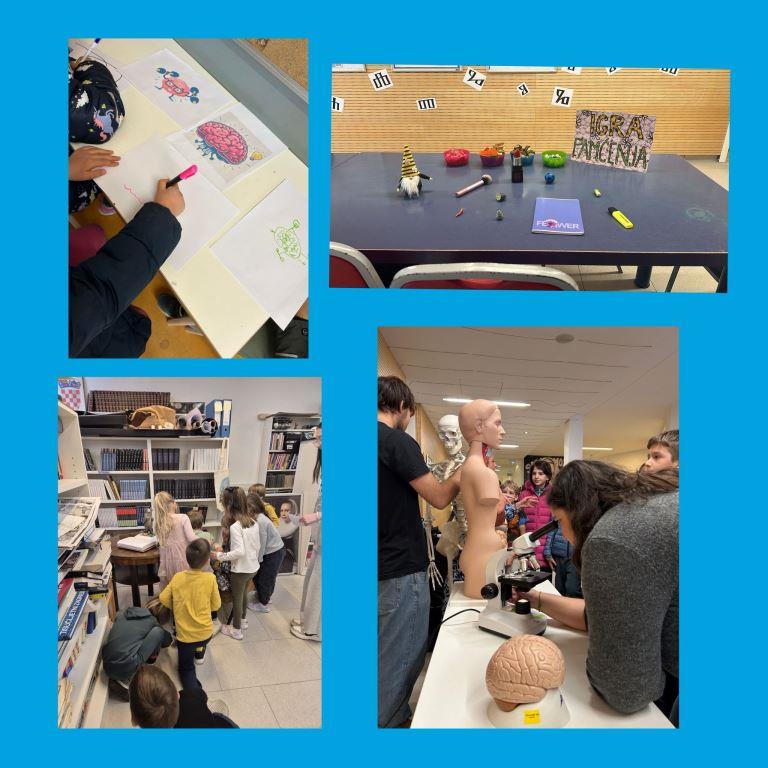 Sajam je imao mnogo centara aktivnosti po cijeloj školi koje su učenici i djeca predškolarci obilazili kako bi nešto novo saznali i naučili, a sve je bilo povezano s temom Mozga. Naši su učenici sami osmislili sve aktivnosti, prilagodili ih dobi i uzrastu djece kako bi im bilo zanimljivo i dinamično. Tako je u prostoru školske knjižnice pod vodstvom naših učenika održan Lov na blago u kojem su djeca vrtićkih skupina rješavali zagonetke kako bi došli do raznih rješenja i pronašli skrivene predmete po prostoru knjižnice.
