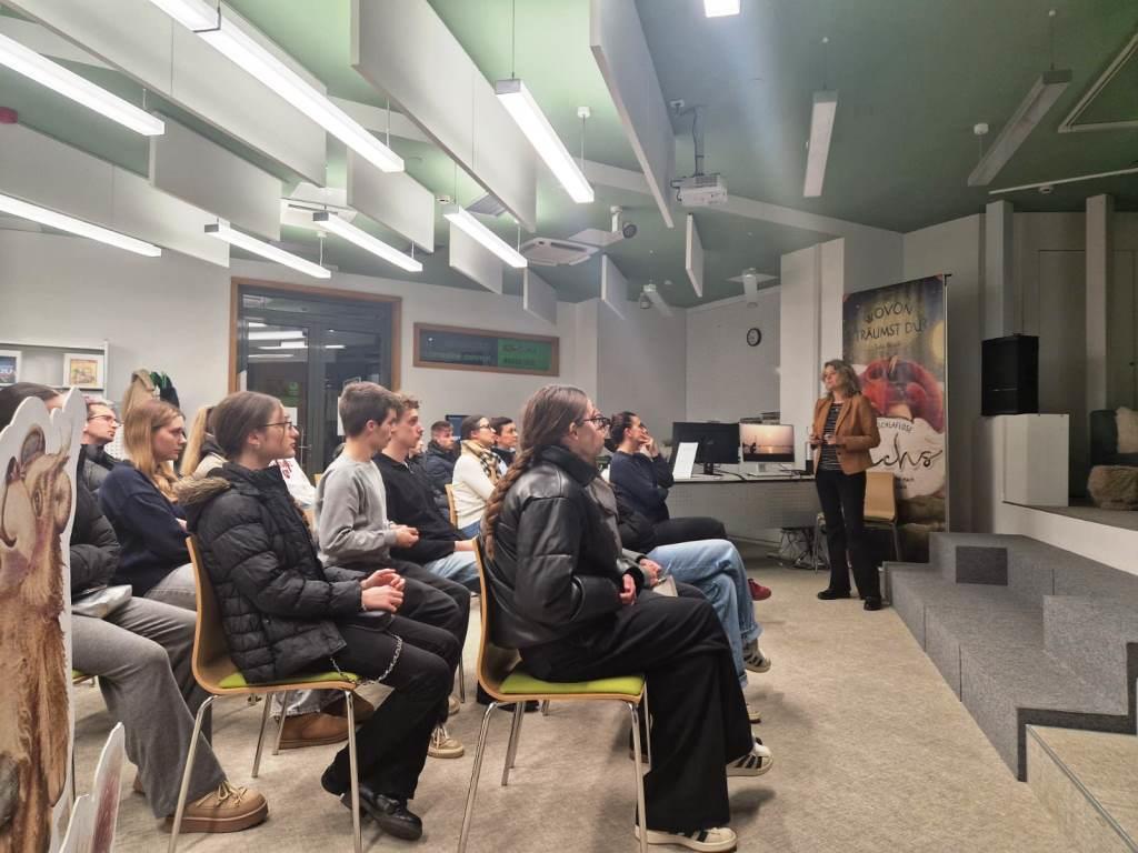 Učenici 2. c, 2. e, 4. a i 4. b sudjelovali su 9. prosinca 2025. na Munjevitim razgovorima u Knjižnici Goethe Instituta. Kroz kratka predavanja i raspravu o predstavljenim temama doznali su mnogo toga o školskim projektima vezanima uz fotografiju kao umjetnički izričaj, ali i o važnosti individualnih obiteljskih tradicija u božićno vrijeme. Uz punč i slastice druženje se nastavilo, a poneki su odlučili posjet ovjekovječiti u fotokutku.
