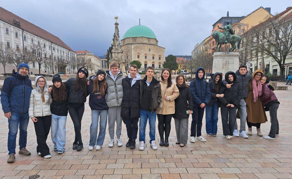 Učenici iz 1. b, 2. b i 3. d IV. gimnazije u pratnji Borisa Štimca, prof. i Tomislava Jurašinovića, prof. nalaze se u posjetu Hrvatskoj školi Miroslava Krleže u Pečuhu.