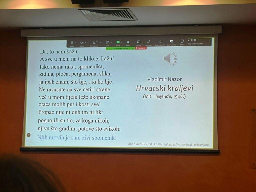 Na kraju smo poslušali pjesmu Vladimira Nazora „Hrvatski kraljevi“, koja je snažno zaokružila cijelo predavanje.