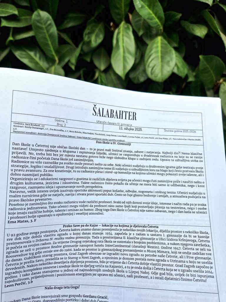 Izašao je novi broj učeničkog časopisa IV. gimnazije – Šalabahter!!! Možete ga preuzeti ovdje!